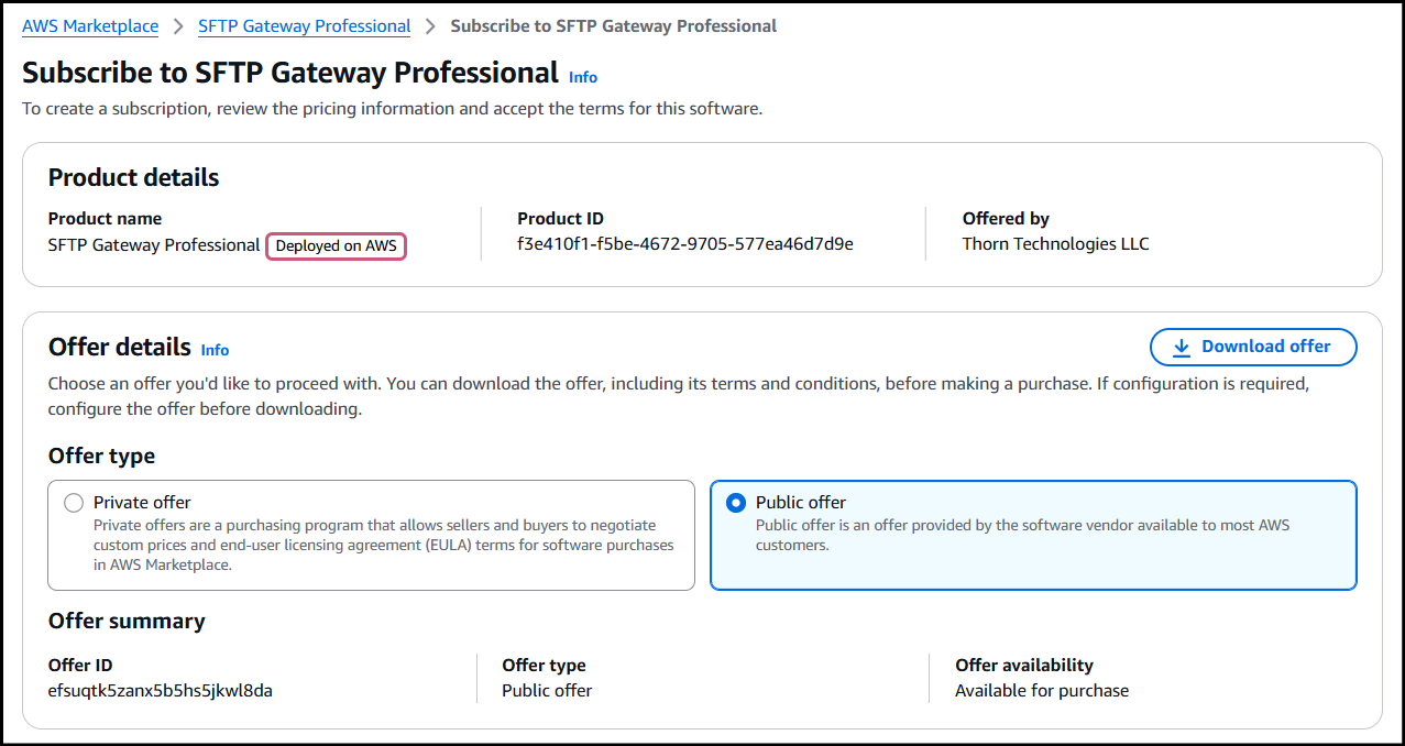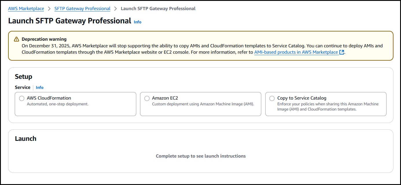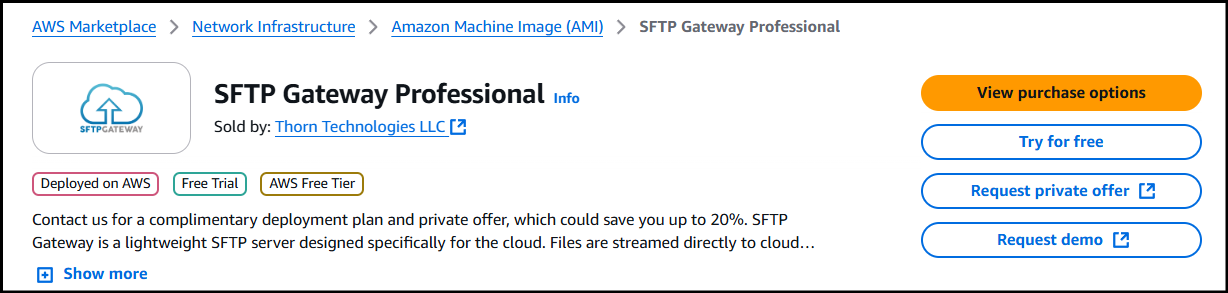 Click here to open the AWS Marketplace page for SFTP Gateway Professional.