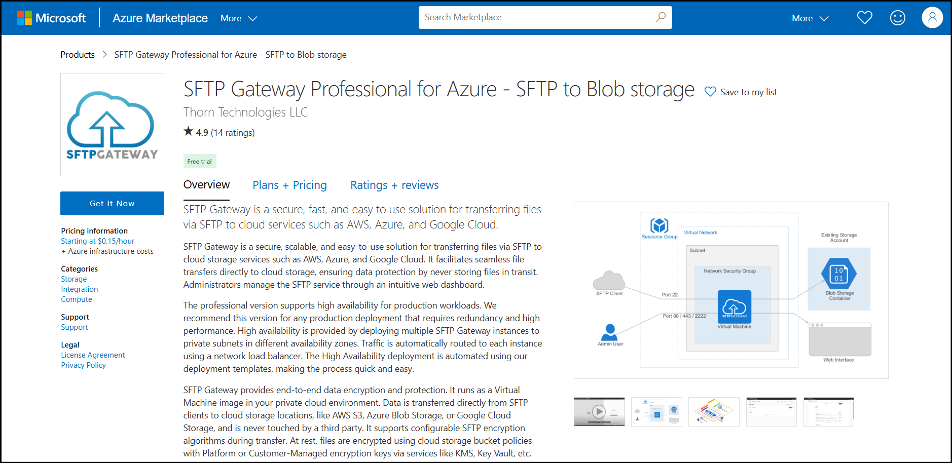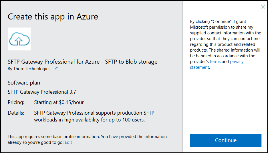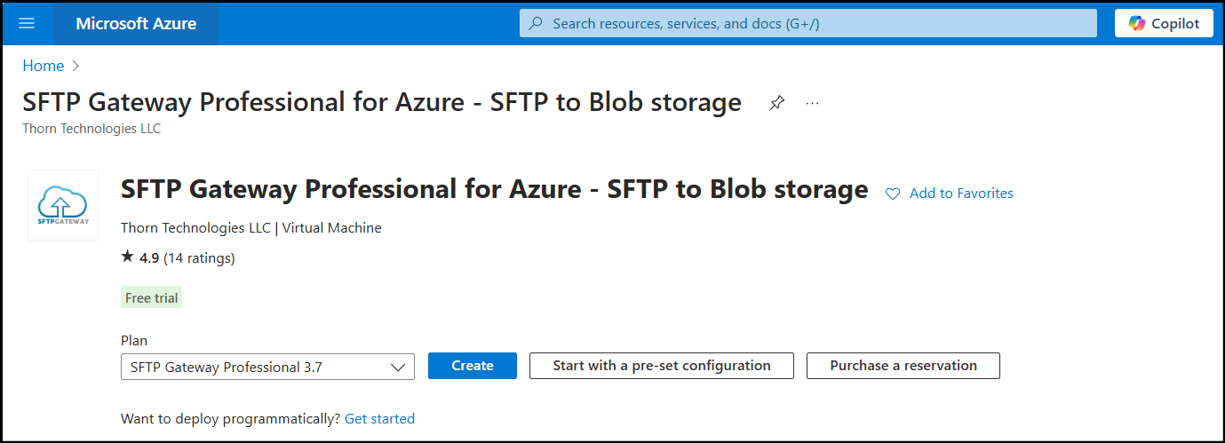 Navigate to the SFTP Gateway product on the Azure marketplace